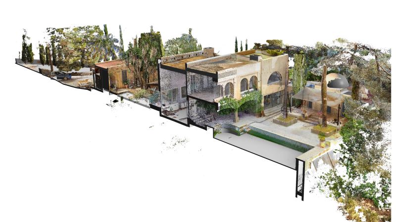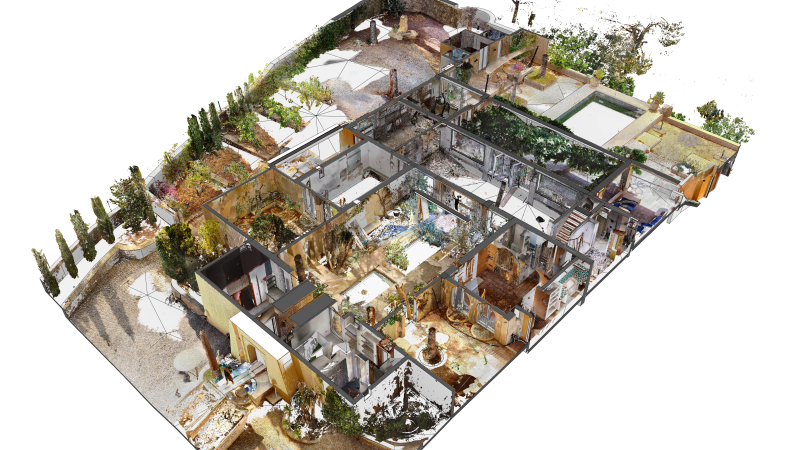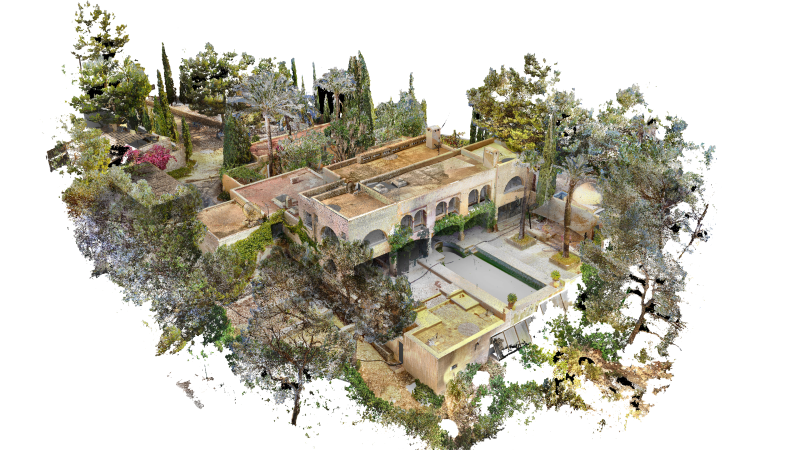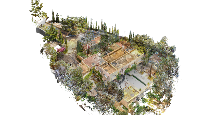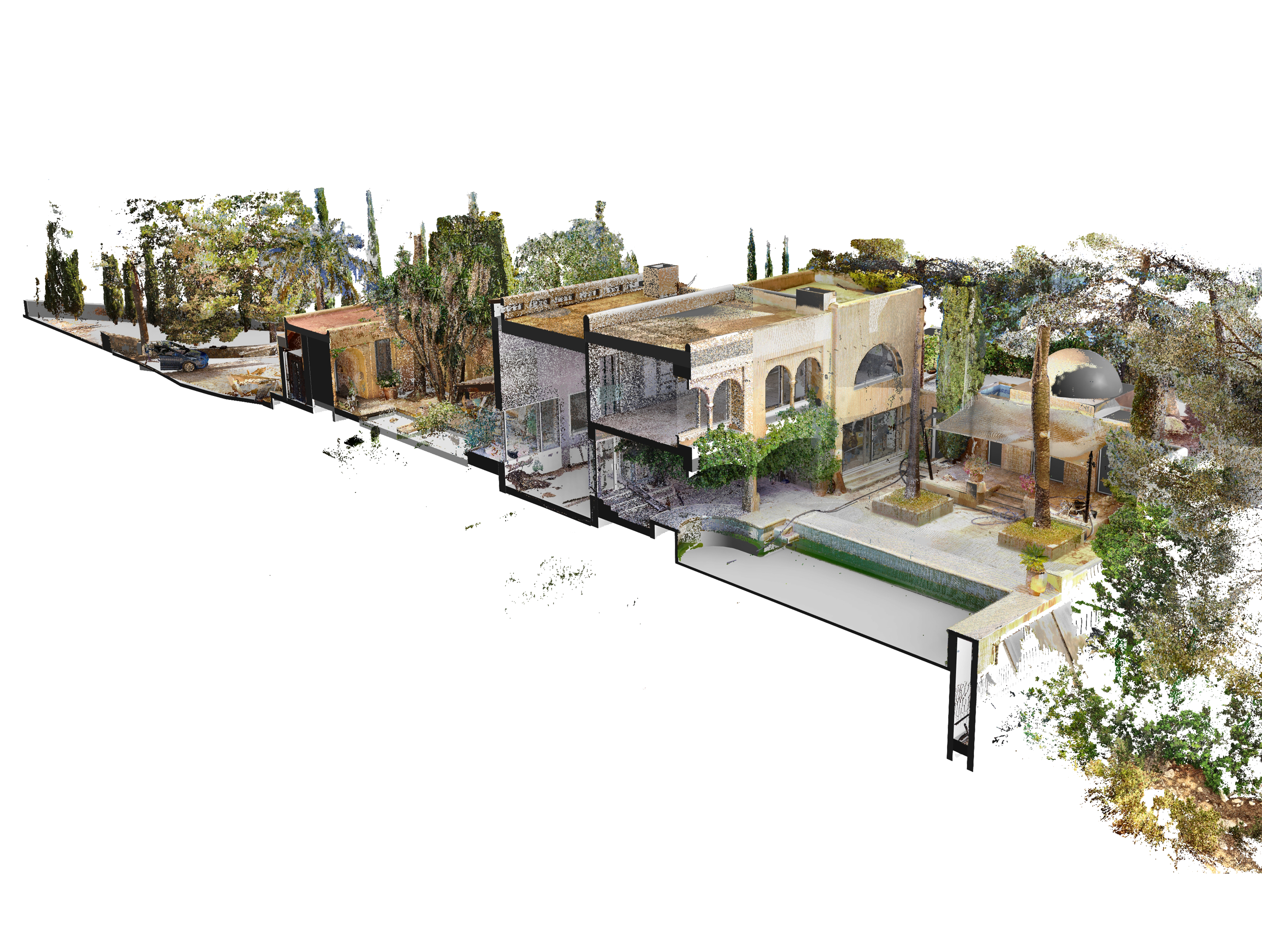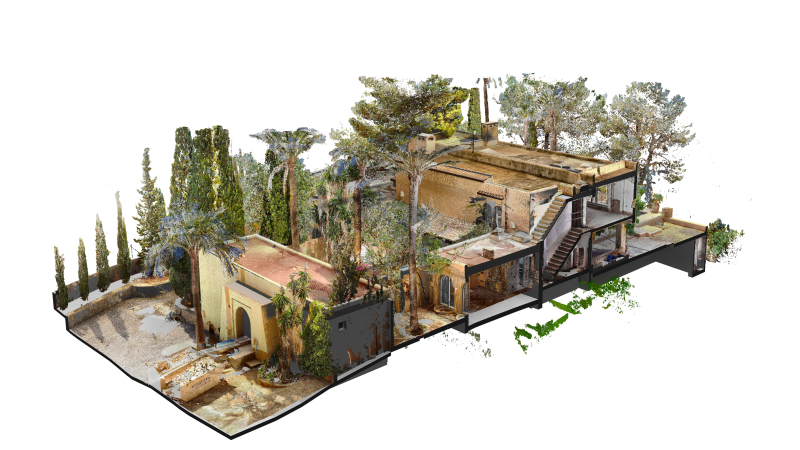 Levantamiento 3D a través de nube de puntos a color para proyectos de reforma de vivienda unifamiliar en urbanización de Roca Llisa (Ibiza).
